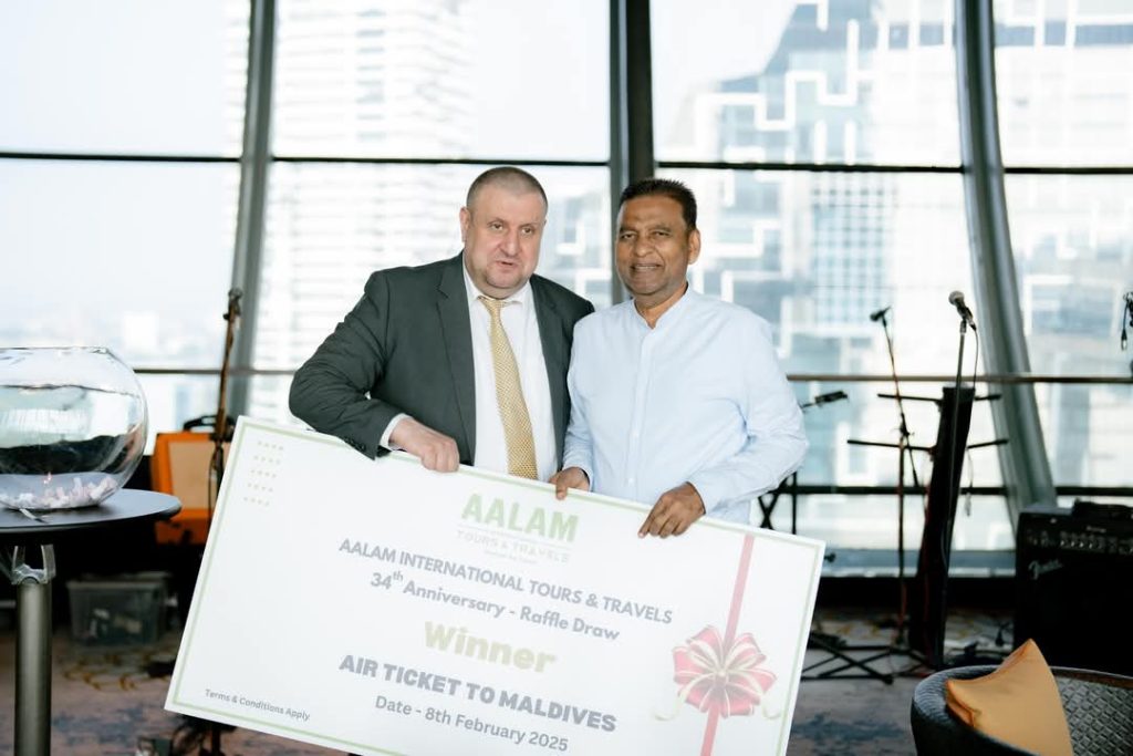 Aalam International Tours & Travels celebrated 34 years of excellence with a special gathering to honor strong relationships, loyal customers, and a shared vision for the future of travel at the Ahasa Lounge, ITC Ratnadipa, Colombo 01, on February 8th, 2025.