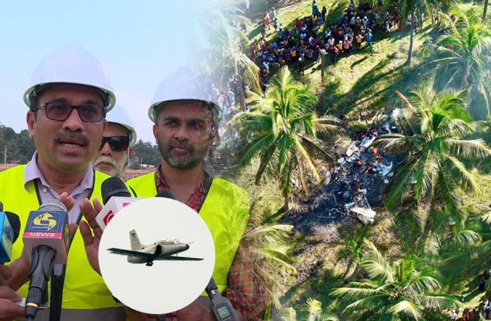 The crash occurred last Friday when a Sri Lanka Air Force pilot training aircraft crashed into a coconut estate in Welagedara in Minuwangate, Wariyapola.