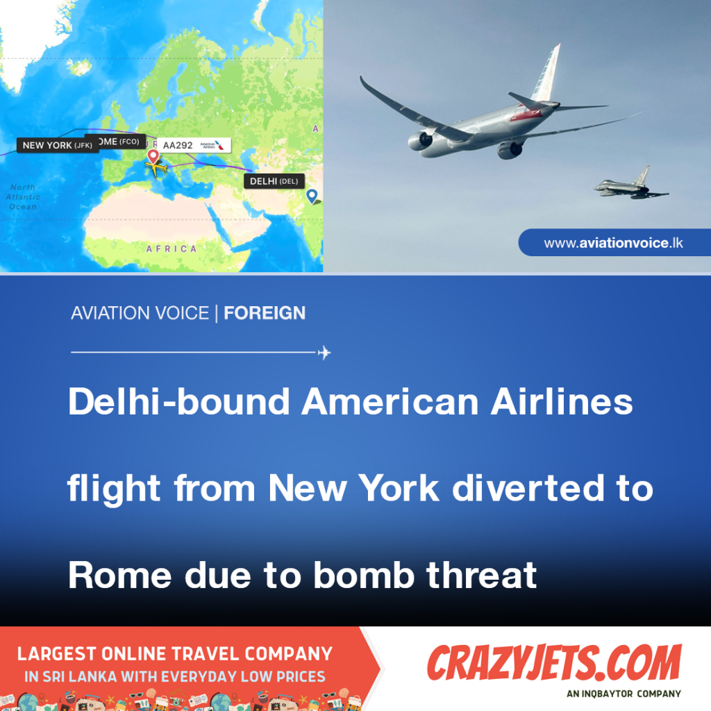 An American Airlines flight from New York (JFK) to New Delhi (DEL) made an unscheduled landing in Rome on Sunday (23) afternoon due to a reported security threat. Flight AA292, a Boeing 787-9, was escorted by Italian Air Force Eurofighters to Leonardo da Vinci International Airport, where it underwent inspection by law enforcement.