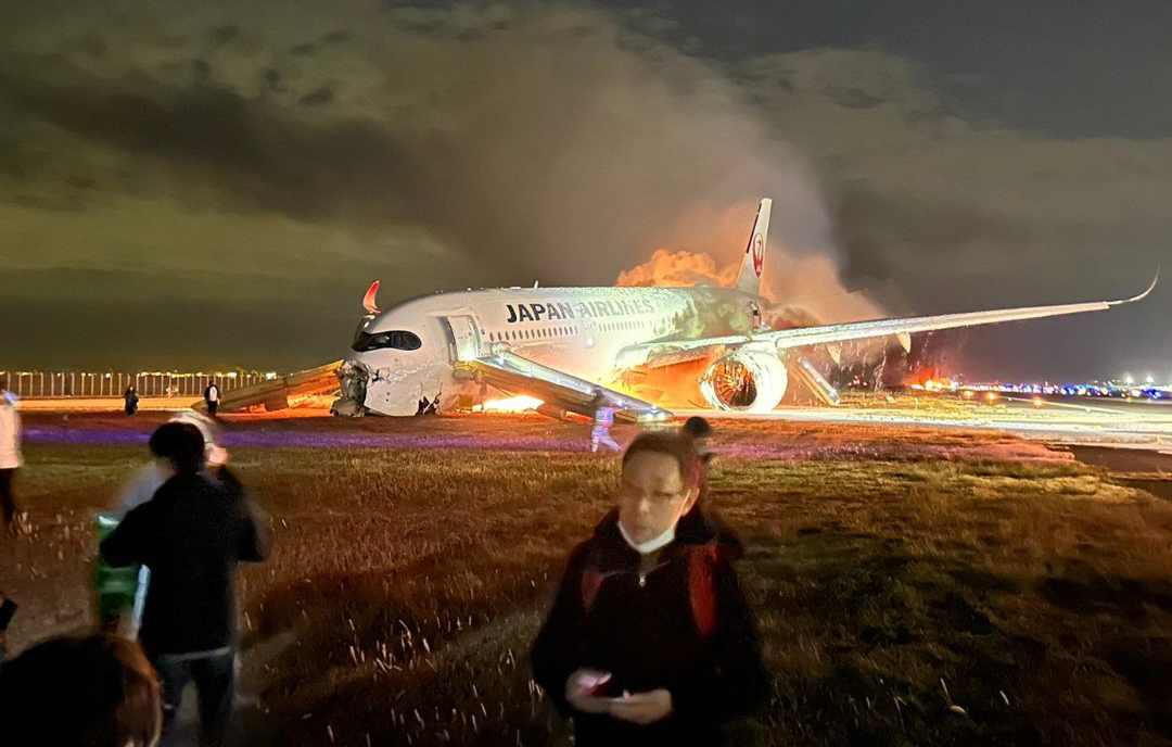 Video footage from Japan’s public broadcaster NHK showed flames coming out of the windows of the aircraft.