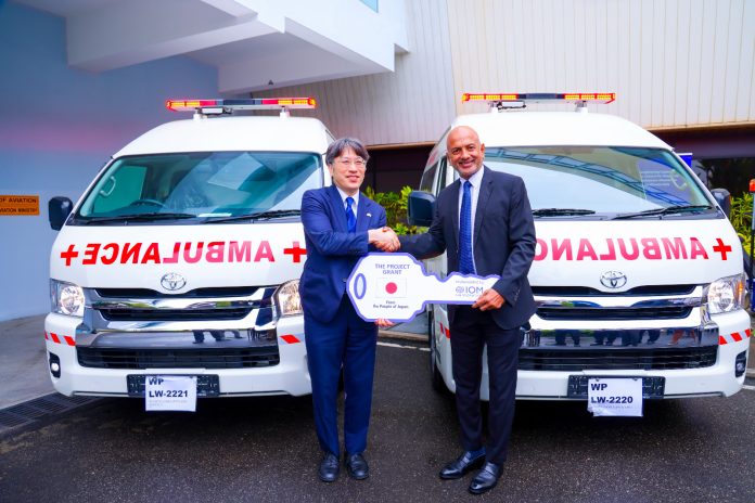 The Bandaranaike International Airport (BIA) and the Colombo Port received two fully equipped ambulances as part of the ongoing Border Health Project, funded by the Government of Japan and implemented by the International Organisation for Migration (IOM).