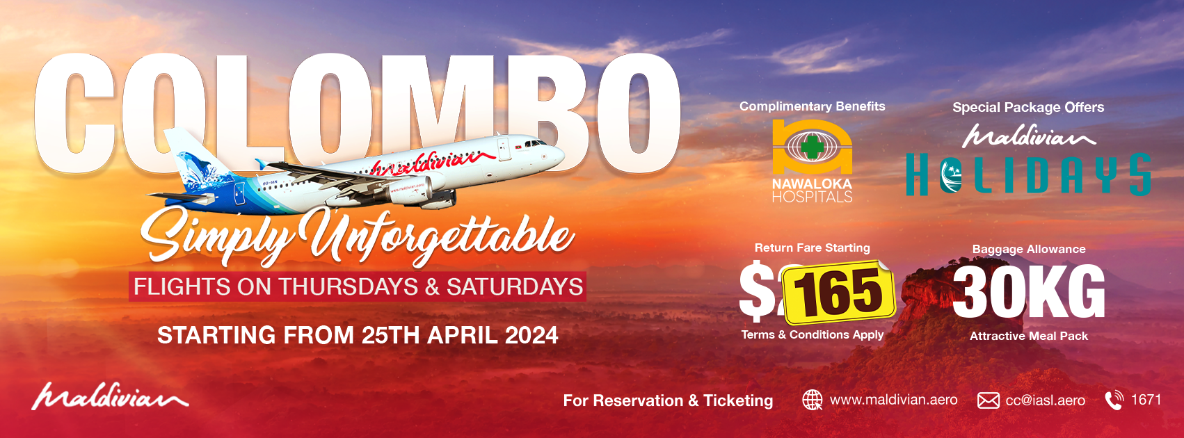 Maldivian, the National Carrier of Maldives will start twice weekly flights from 25th April 2024.