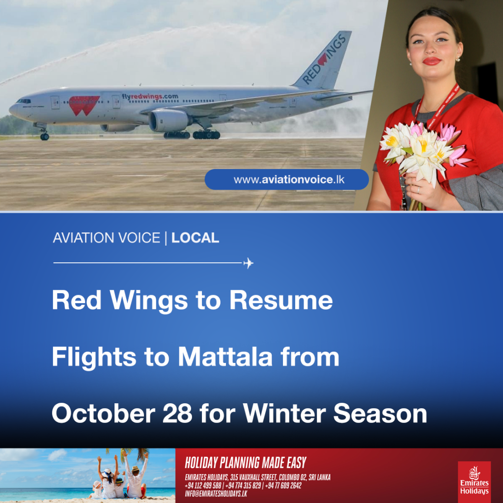 Red Wings Airlines is set to resume flights to Mattala Rajapaksa International Airport starting 28th October 2024, for the upcoming winter season.