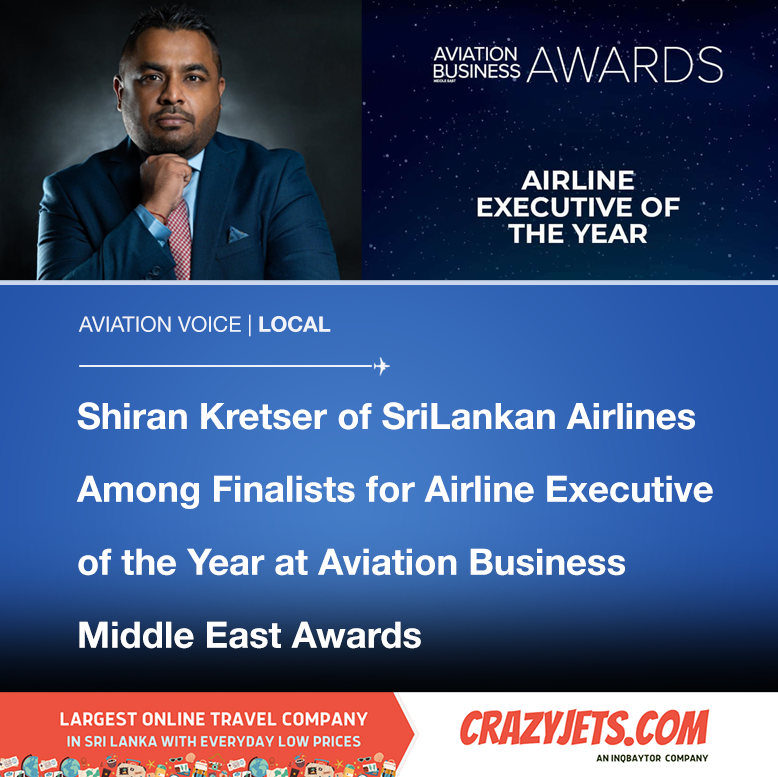 Shiran Kretser, representing SriLankan Airlines, has been named among the finalists for the prestigious Airline Executive of the Year award at the Aviation Business Middle East Awards. This accolade recognizes exceptional leaders driving innovation and excellence in the Middle East’s aviation sector.