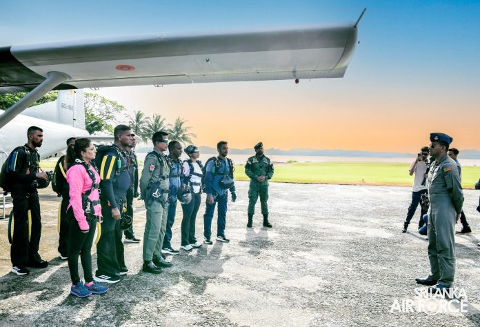 In a significant stride towards promoting adventure tourism in Sri Lanka, the SLAF has inaugurated the ‘Eagles’ Skydive Sri Lanka’ Tandem Jump Sports Club at SLAF Station Koggala today (01 August 2024). This initiative, envisioned by the Commander of the Air Force, Air Marshal Udeni Rajapaksa, aims to offer an exhilarating experience to adventure enthusiasts and tourists. It further seeks to encourage external parties to establish this adventure sport islandwide, ultimately strengthening the Sri Lankan economy.