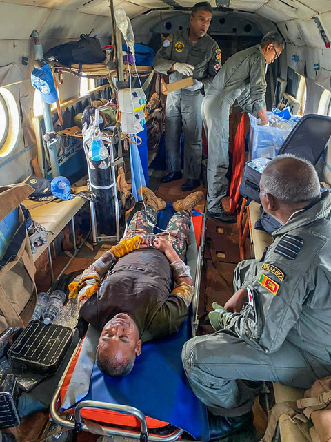 The aircrew comprised Squadron Leader Sandeepa Wijayathunga, Sergeant WCN Senevirathne, and Corporal DVPM Rodrigo. The Aeromedical Evacuation Team included Group Captain Sujith Perera, Flight Sergeant KW Sumedha, and Flight Sergeant RDH Karunadasa, who provided critical in-flight medical care to the casualties, the SLAF stated.