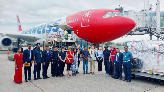 An aircraft carrying 2.6 metric tons of disaster relief aid from Switzerland arrived at Bandaranaike International Airport (BIA) in Katunayake on 6th December 2025.