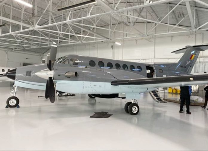 The aircraft, manufactured by Beechcraft Textron Aviation and completed in late 2022, underwent additional upgrades, including the installation of maritime patrol sensors like radar and cameras, finalized in mid-2024.